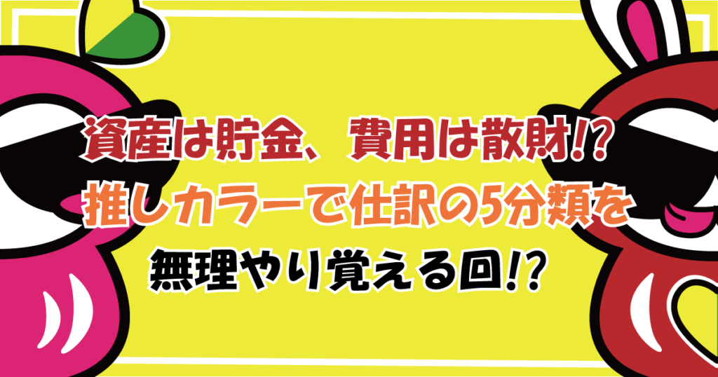 第1話 資産は貯金、費用は散財!?推しカラーで仕訳の5分類を無理やり覚える回!